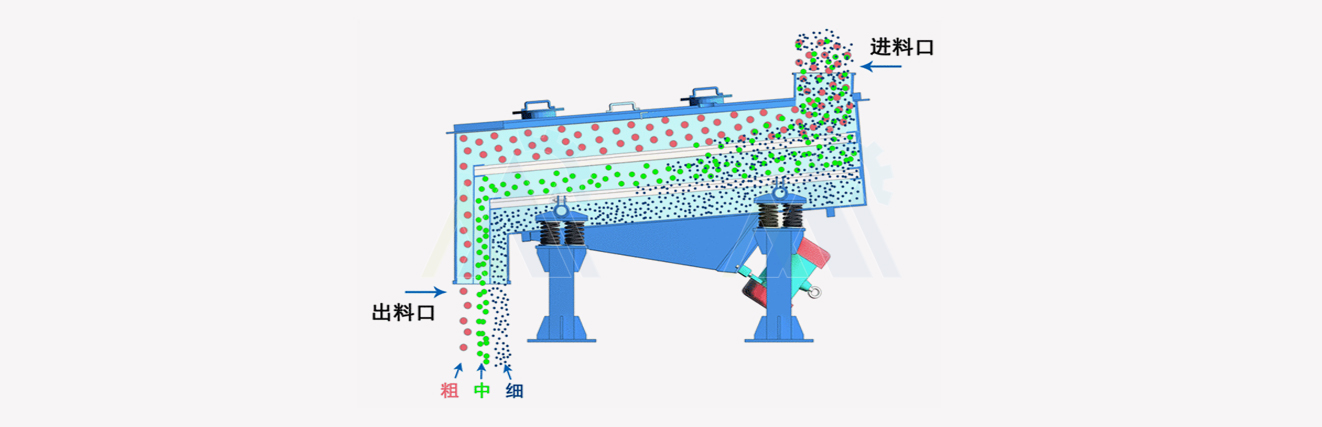 MRZX直线振动筛利用振动电机激振作为振动源,使物料在筛网上被抛起,同时向前作直线运动,物料从给料机均匀地进入筛分机的进料口,通过多层筛网产生数种规格的筛上物、筛下物、分别从各自的出口排出。具有能耗低、产量高、结构简单、易维修、全封闭结构,无粉尘溢散的特点,自动排料,更适合于流水线作业。